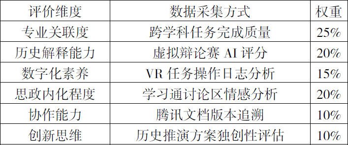 开发”历史素养雷达图”自动生成系统(如表所示),从6 个维度追踪学习成效: