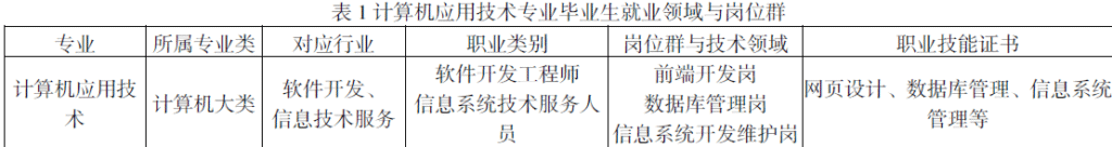 高职院校计算机应用技术专业面向的就业领域及主要工作岗位如下表 1 所示: