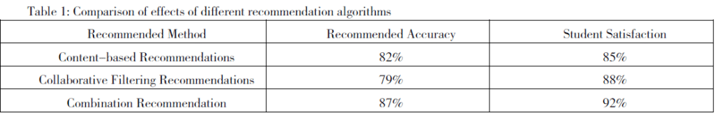 Teaching resource recommendation is to use the recommendation system algorithm to automatically recommend personalized teaching resources suitable for students’ learning needs based on their learning characteristics, knowledge level, learning preferences, etc. Through the recommendation of teaching resources, students can be provided with “thousands of people, thousands of faces” learning content and improve learning efficiency and quality. Common recommendation algorithms include content-based recommendations,collaborative filtering recommendations, combined recommendations, etc. Taking content-based recommendations as an example, the system can match and push relevant English reading articles, audio-visual materials, vocabulary exercises and other learning resources based on students’ English proficiency, learning style, target exams and other characteristics. For another example, collaborative filtering recommendation can be used to explore the learning behavior patterns of different student groups, and based on the principle of “birds of a feather flock together”, recommend to students learning resources that other students with similar learning behaviors like.
