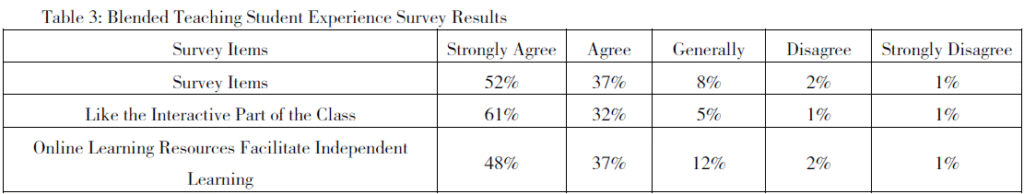 This study examines the effectiveness of blended teaching in college English courses in a certain university. Before class, teachers release preview tasks on the online platform, and students watch micro videos and complete online exercises independently; during class, teachers focus on key contents, organize group discussions, scenario simulations and other interactive activities, and use the teaching platform to implement brainstorming and online tests. etc.; after class, students complete personalized consolidation exercises through the platform, and teachers answer questions and expand online. The study uses questionnaire surveys, performance analysis and other methods to evaluate the effectiveness of blended teaching. The results show that 89% of students believe that blended teaching can promote English learning, 93% of students like classroom interaction, and 85% of students believe that online learning resources are helpful for independent learning. Compared with traditional teaching, after adopting blended teaching, students’ final English scores increased by an average of 7.5 points.